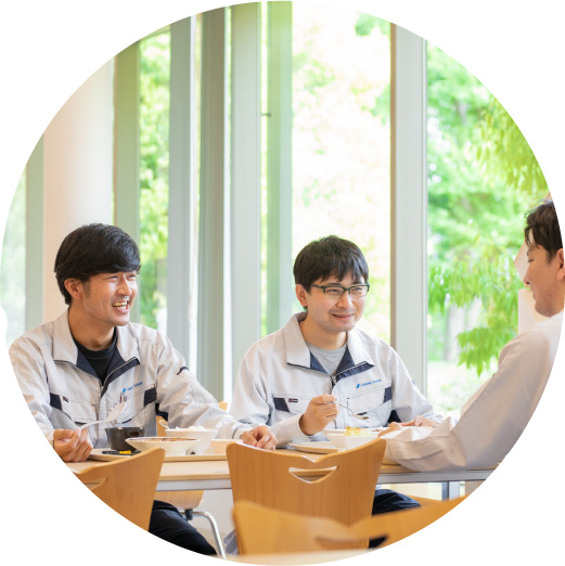 会社補助によって安価に食事ができる社員食堂では、複数の日替わり定食が提供されます。また、本社敷地内に単身向け・ファミリー向けのメンバーズハウス(社宅)を用意。通勤に便利なだけでなく、同僚や先輩、後輩と親睦を図ることができるのも魅力です。できるだけ早く会社に慣れていただきたいと考えています。