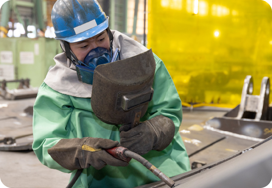 溶接を開始。最初は真っすぐ止めるのも難しいですが、