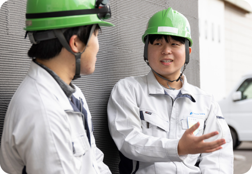 朝礼に参加。本日の予定を確認して作業を開始します。