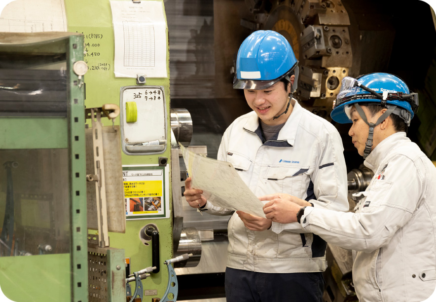 作業開始。主にNC旋盤を用いた旋削加工と、