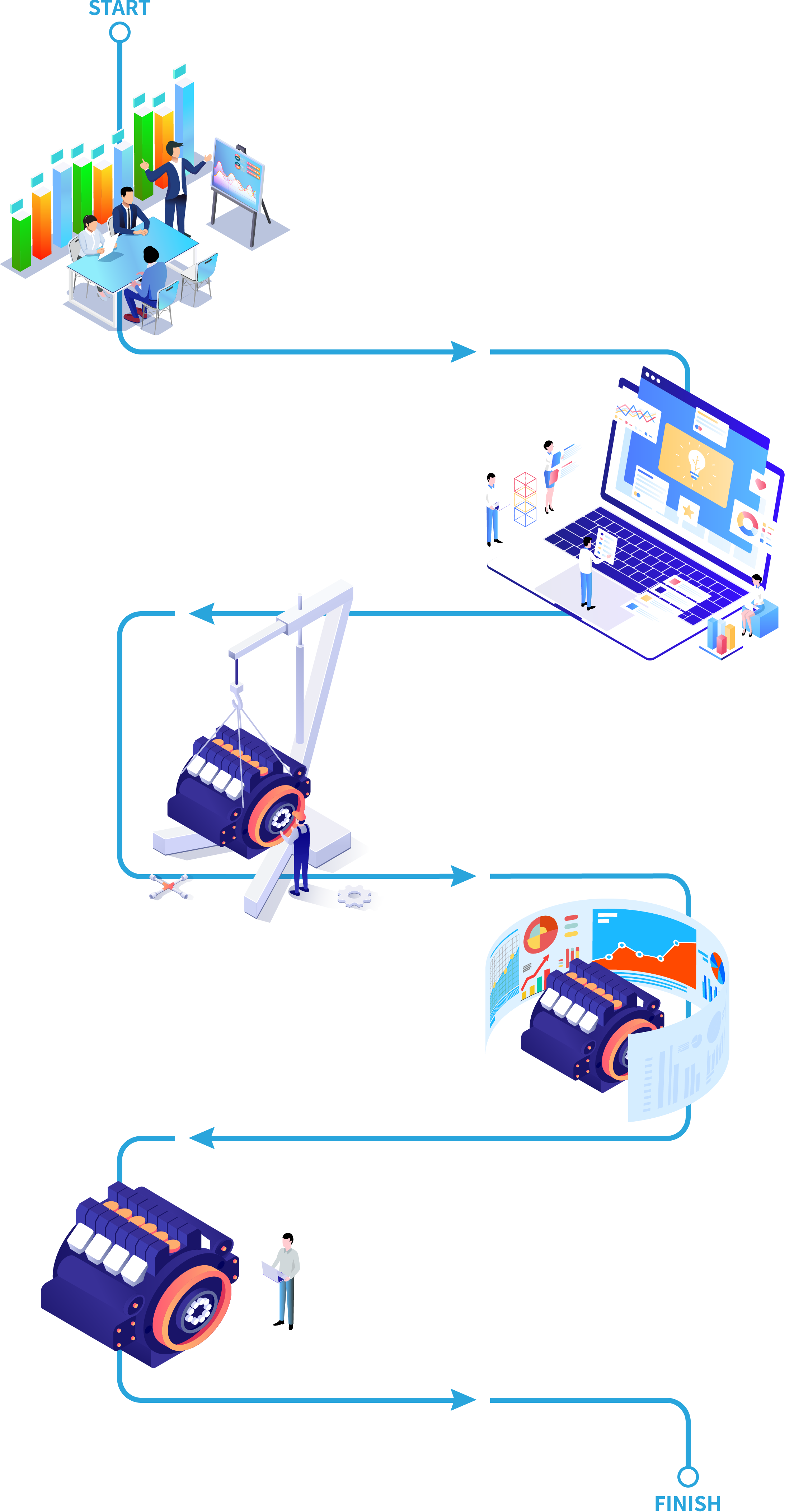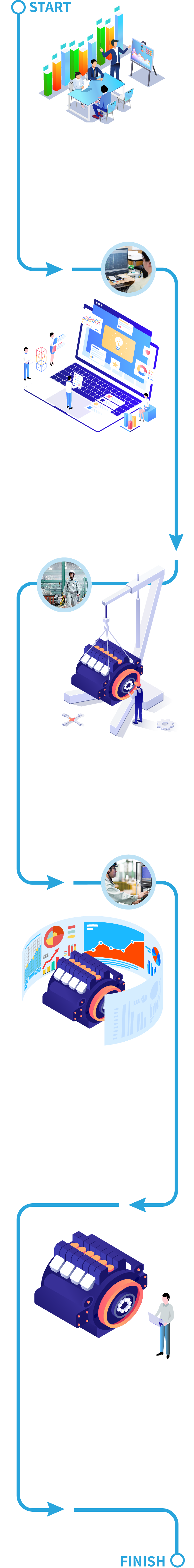 各業界のトップクラス企業である取引先からご相談をいただく内容は、これまでの製品を進化させた製品であったり、全く新しい発想で企画設計する製品であったり多種多様。要求される性能や仕様を基に、必要となるスペックを導き出していく。