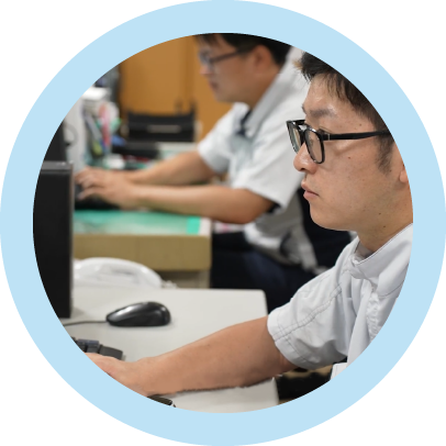 これまで世界で作られたことのない製品に関わるため、製造工程においても十二分の配慮が求められる。製造を開始して予想外に発現した事象などに対応。大量生産とは異なり、特注品の個別生産ならでは難しさを、ベテラン社員の経験知とともに克服していく工程でもある。