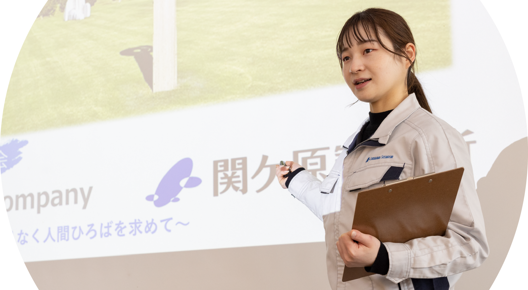 最初に任されたのは、夏のインターンシップ。理系ならではの視点から、企業情報に限らず製造業全体としての説明や、工場見学、技術系社員との交流の場をつくり、関ケ原製作所に興味を持つ学生だけではなく、広く製造業について知りたい学生に興味を持ってもらえるよう工夫した。